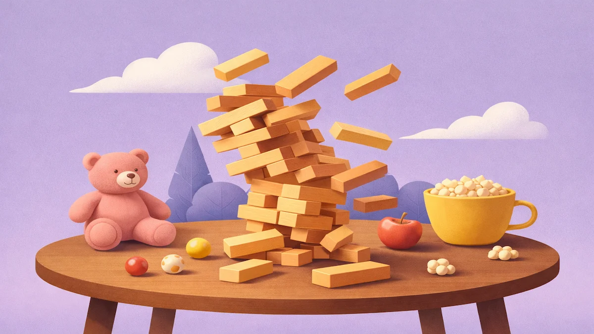 Es un juego que funciona igual de bien con niños, adultos, familias o grupos de amigos. No hay tablero, cartas ni pantallas de por medio. Solo necesitas una torre de bloques de madera, una superficie estable y un poco de buen pulso. A partir de ahí, todo es tensión, risas nerviosas y miradas fijas en la torre.